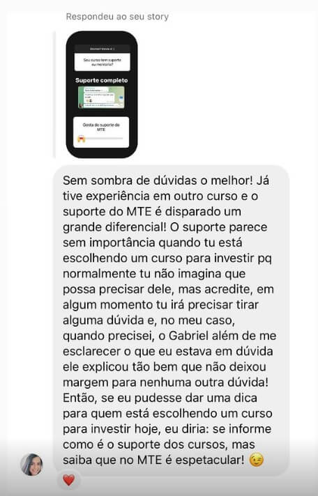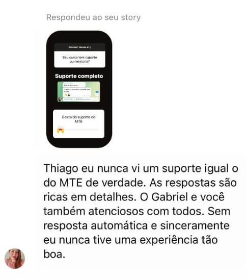 Com certeza! MTE tem um suporte exclusivo e humanizado que tira todas suas duvidas através da área de membros, grupo de alunos e email, ou seja, você tem pelo menos 3 lugares diferentes para tirar qualquer dúvida sempre que precisar.